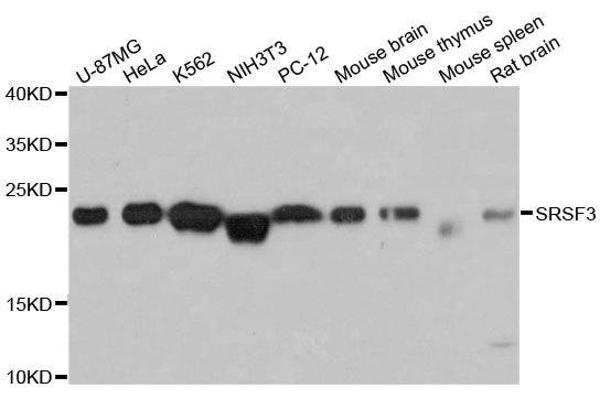 SRSF3 Reactivité: Humain WB, ELISA Hôte: Lapin Polyclonal unconjugated