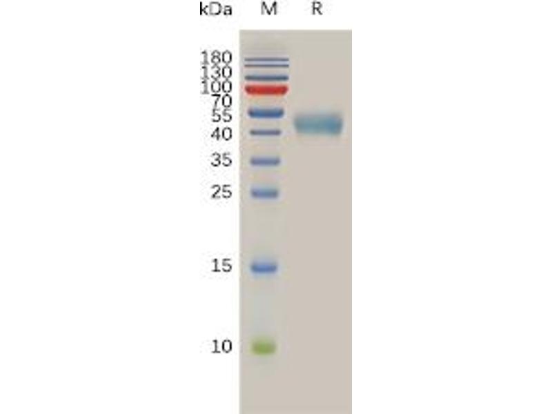 The purity of the protein is greater than 95 % as determined by SDS-PAGE and Coomassie blue staining.