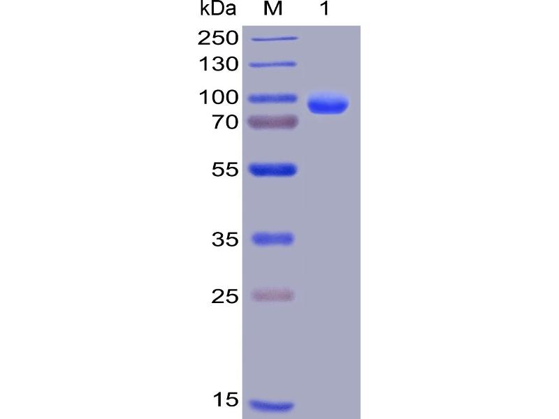 The purity of the protein is greater than 95 % as determined by SDS-PAGE and Coomassie blue staining.