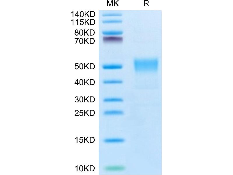 The purity of the protein is greater than 95 % as determined by SDS-PAGE and Coomassie blue staining.