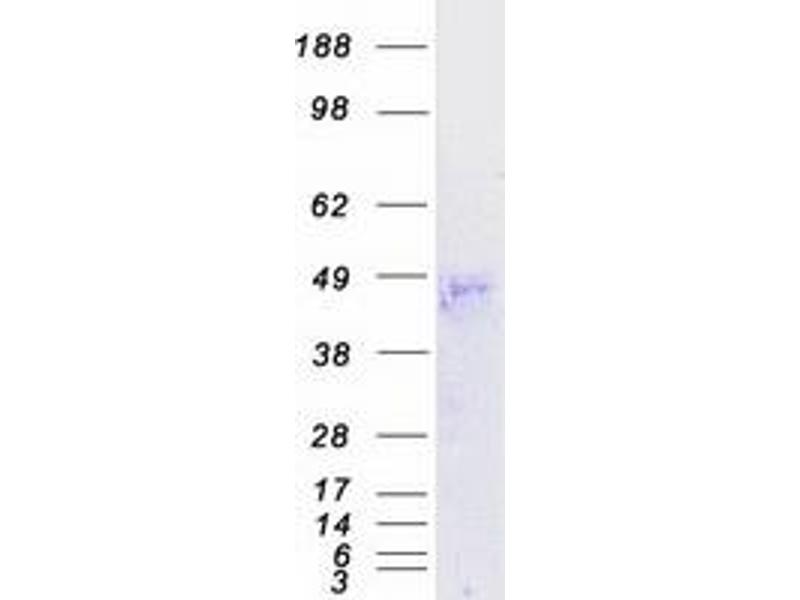 The purity of the protein is greater than 95 % as determined by SDS-PAGE and Coomassie blue staining.