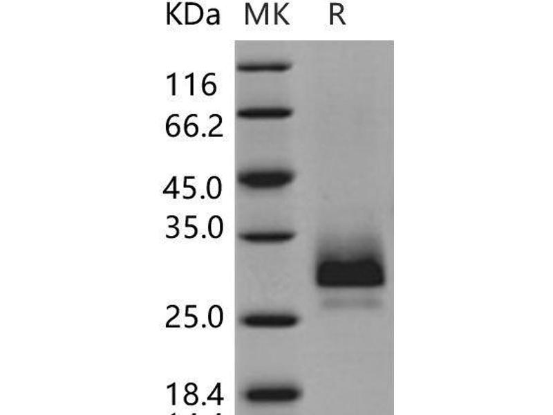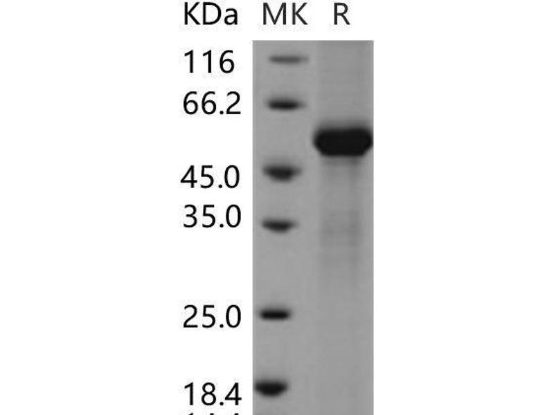 The purity of the protein is greater than 95 % as determined by SDS-PAGE and Coomassie blue staining.