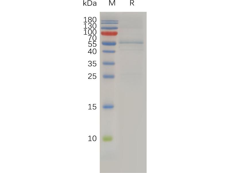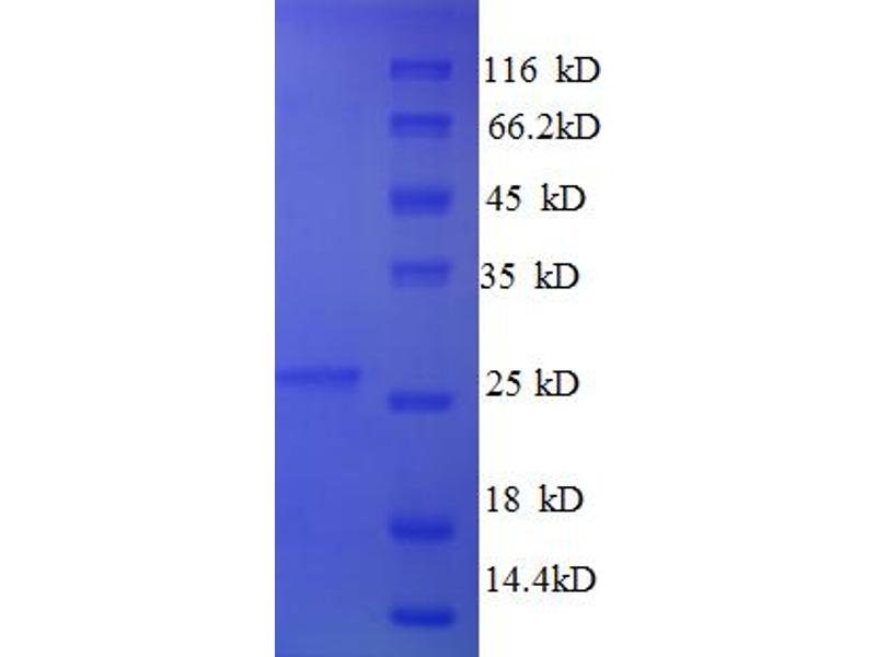 The purity of the protein is greater than 95 % as determined by SDS-PAGE and Coomassie blue staining.