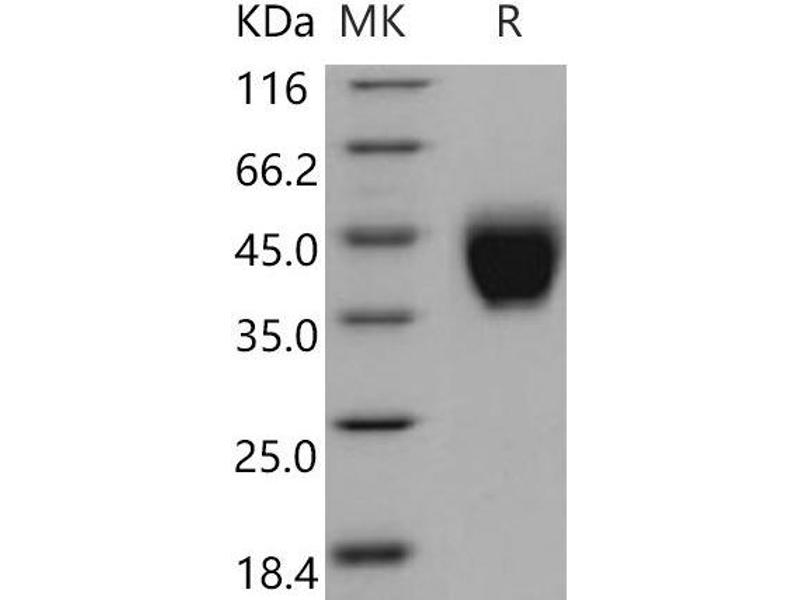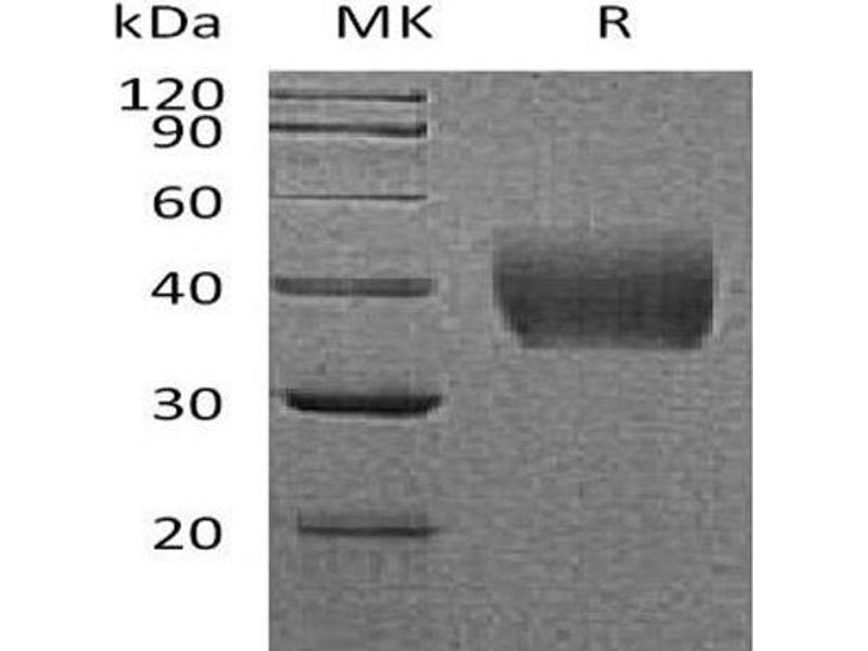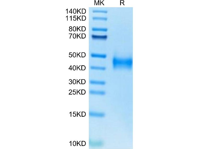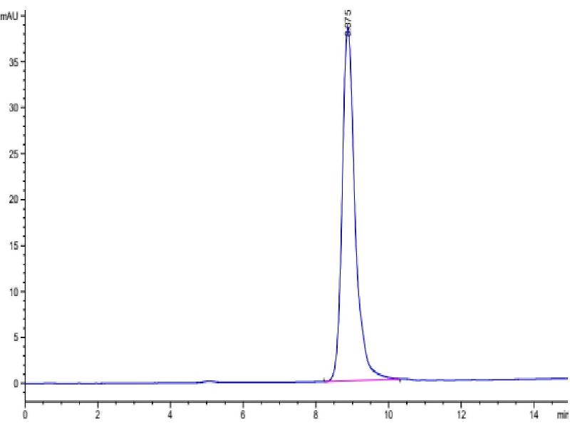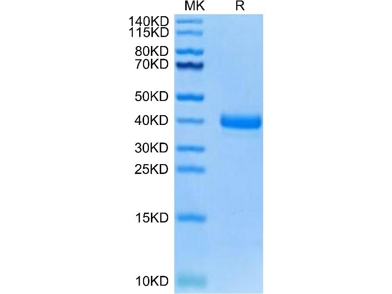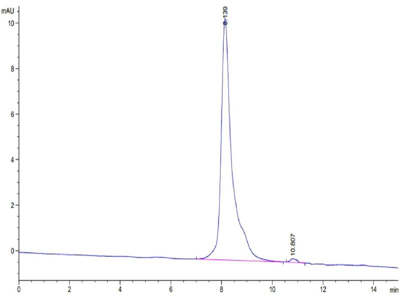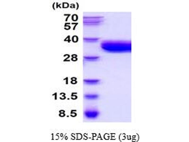 The purity of the protein is greater than 95 % as determined by SDS-PAGE and Coomassie blue staining.