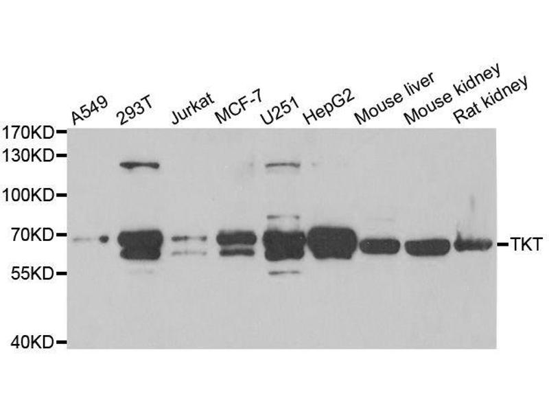 : "Large-scale mapping of human protein-protein interactions by mass spectrometry. ..." dans: Molecular systems biology, Vol. 3, pp. 89, (2007) (PubMed).Pseudonymes pour TKT Anticorps