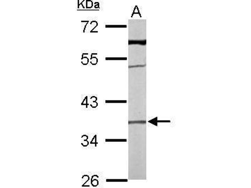 : "Genome-wide DNA methylation differences between late-onset Alzheimer's disease and cognitively normal controls in human frontal cortex." dans: Journal of Alzheimer's disease : JAD, Vol. 29, Issue 3, pp. 571-88, (2012) (PubMed).Pseudonymes pour TMEM59 Anticorps
