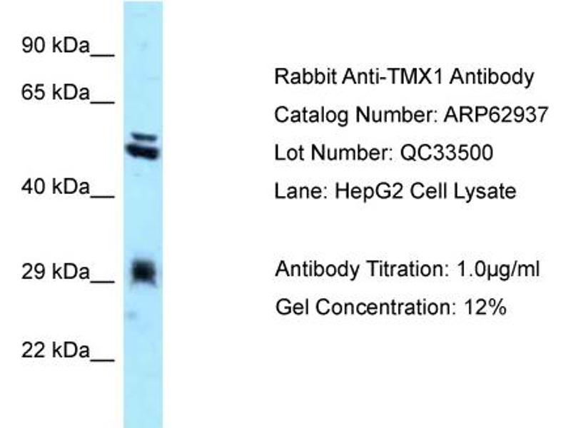 : "Identification of a novel thioredoxin-related transmembrane protein." dans: The Journal of biological chemistry, Vol. 276, Issue 13, pp. 10032-8, (2001) (PubMed).Pseudonymes pour TMX1 Anticorps