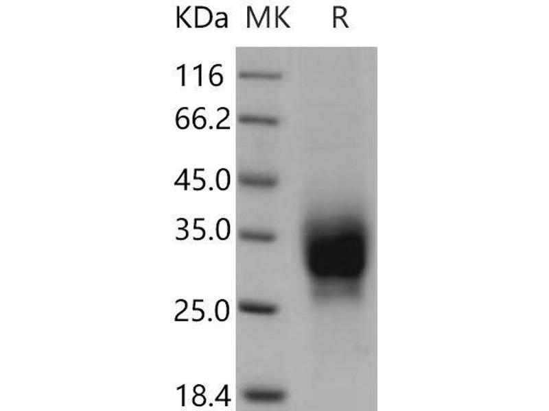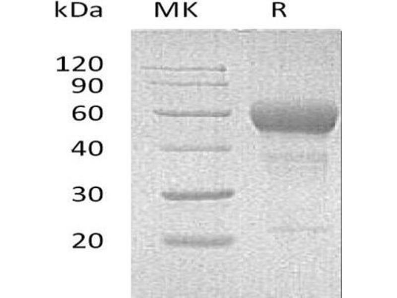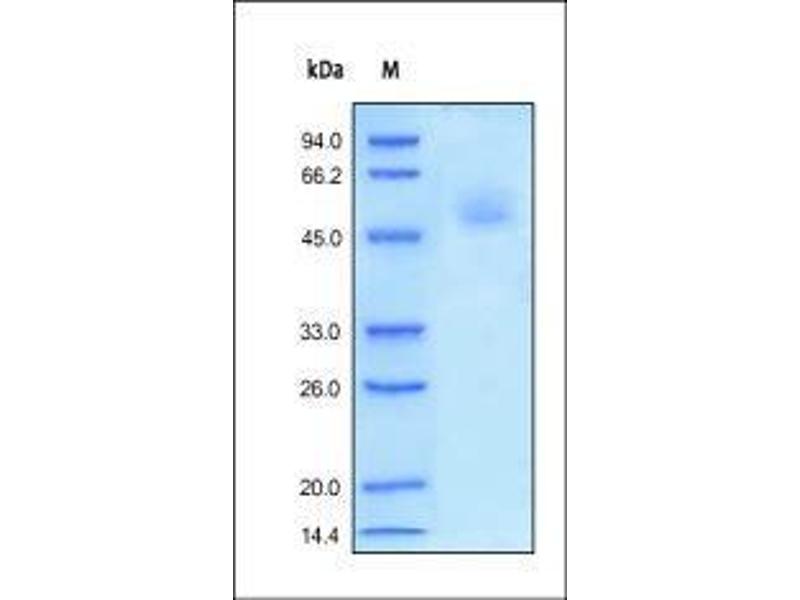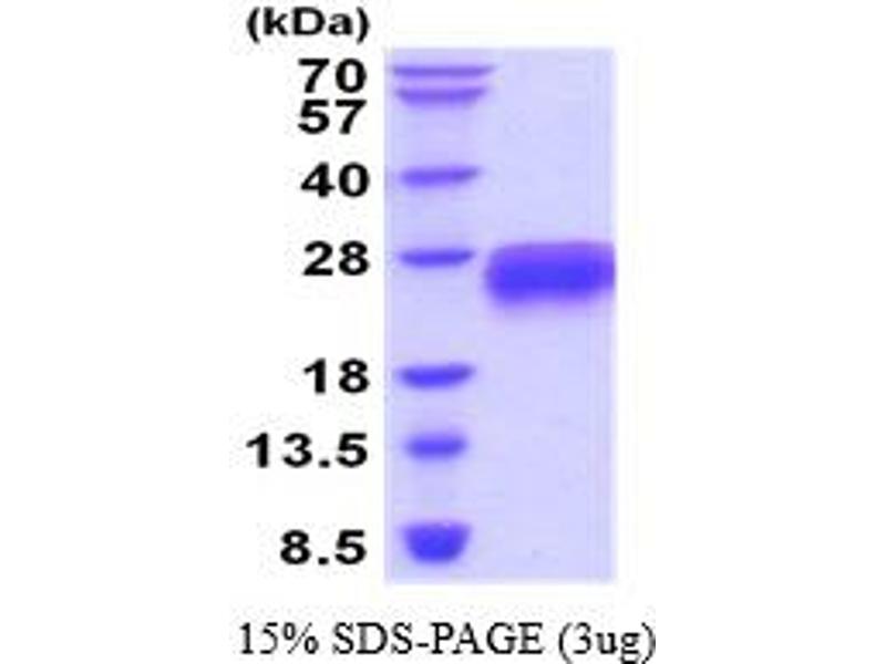 The purity of the protein is greater than 95 % as determined by SDS-PAGE and Coomassie blue staining.