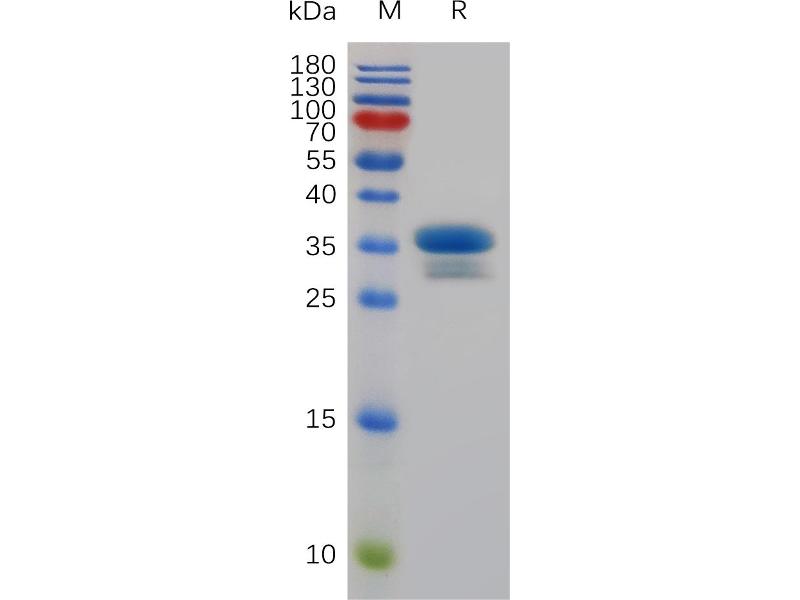 The purity of the protein is greater than 95 % as determined by SDS-PAGE and Coomassie blue staining.