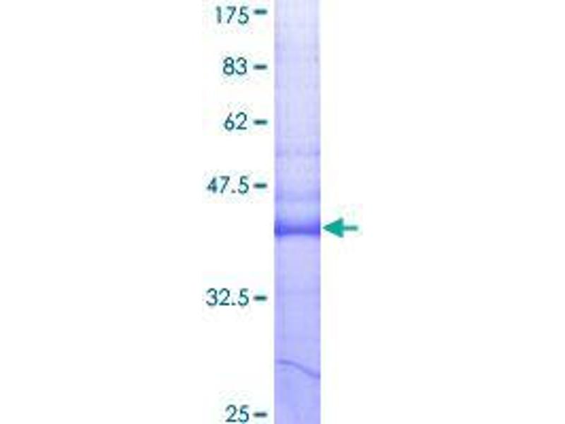 The purity of the protein is greater than 90 % as determined by SDS-PAGE and Coomassie blue staining.