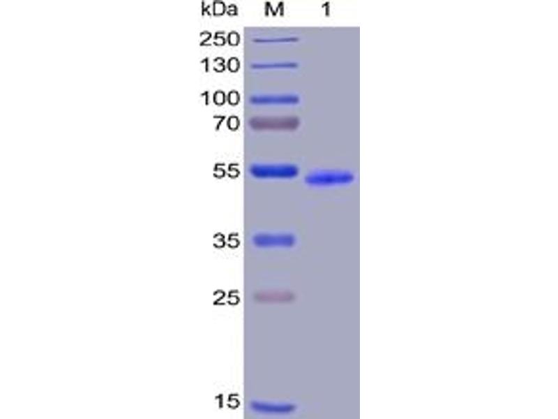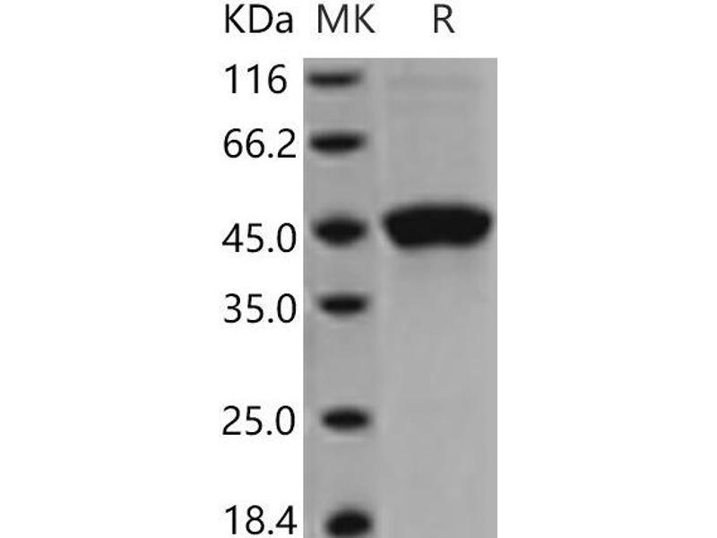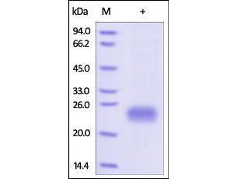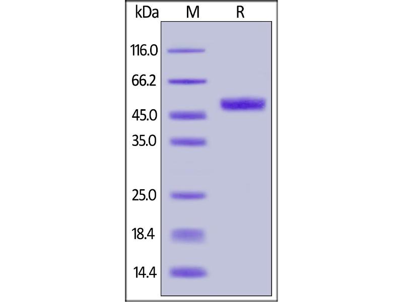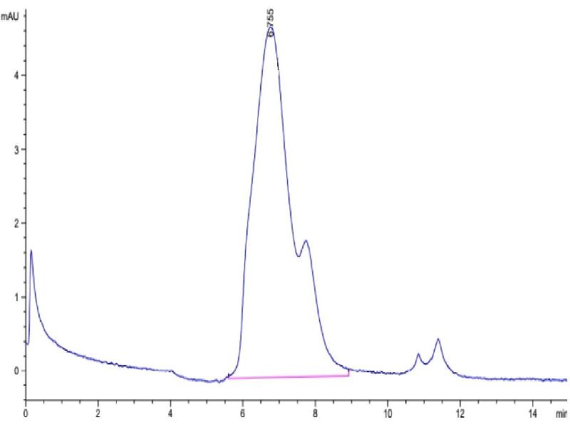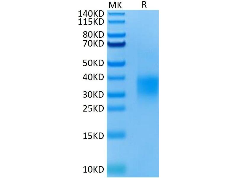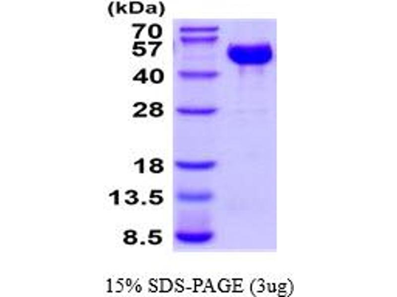 The purity of the protein is greater than 95 % as determined by SDS-PAGE and Coomassie blue staining.
