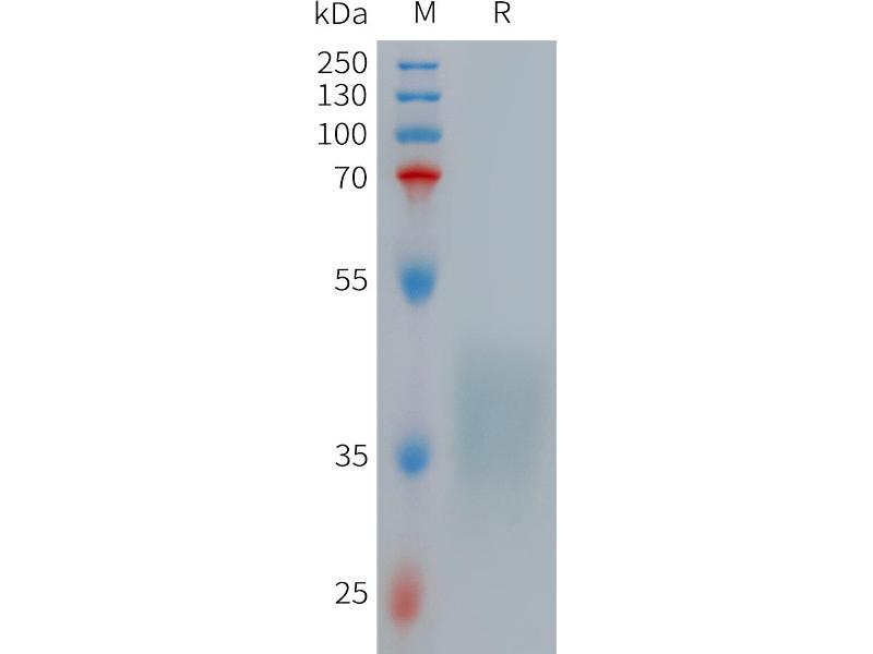 The purity of the protein is greater than 95 % as determined by SDS-PAGE and Coomassie blue staining.