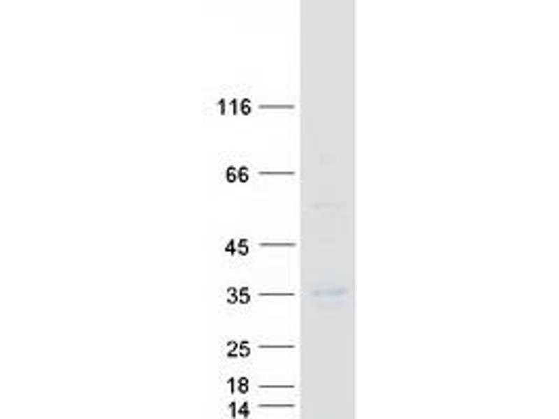 The purity of the protein is greater than 95 % as determined by SDS-PAGE and Coomassie blue staining.