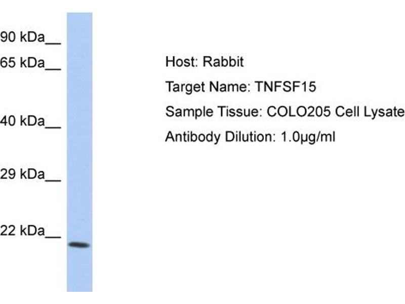 TNFSF15 Reactivité: Humain, Souris, Boeuf (Vache) WB Hôte: Lapin Polyclonal unconjugated