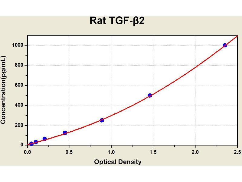 TGFB2 Reactivité: Rat Colorimetric Sandwich ELISA 15.6 pg/mL - 1000 pg/mL Cell Culture Supernatant, Cell Lysate, Plasma, Serum, Tissue Homogenate
