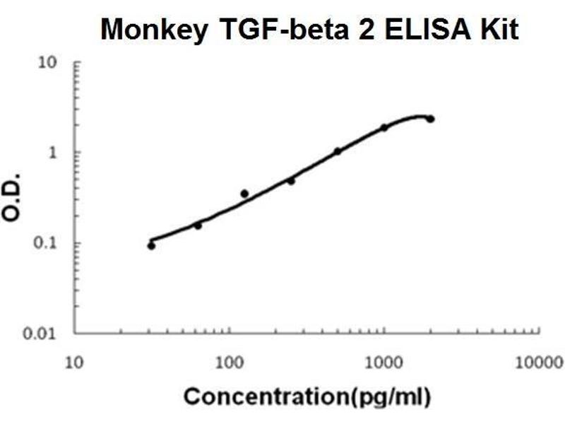 TGFB2 Reactivité: Macaque rhésus Colorimetric Sandwich ELISA 31.25 pg/mL - 2000 pg/mL Plasma, Serum