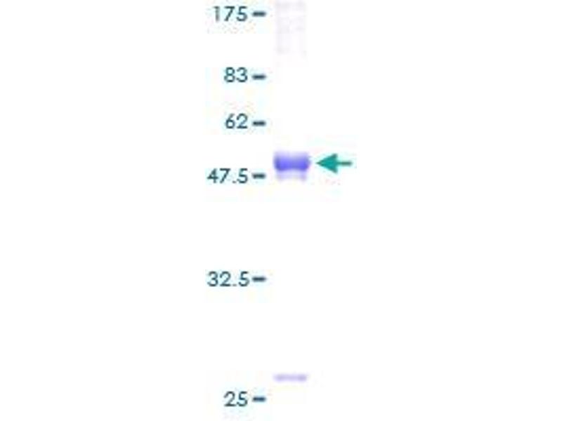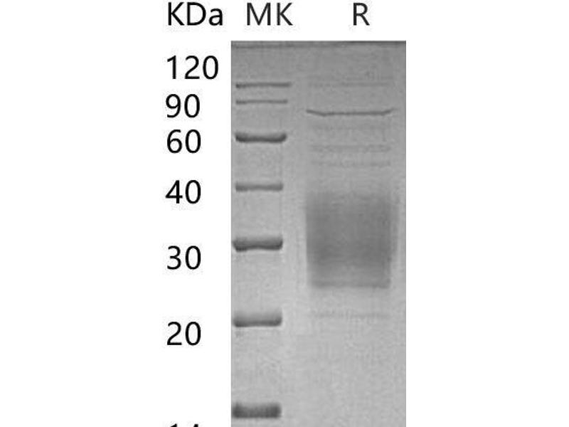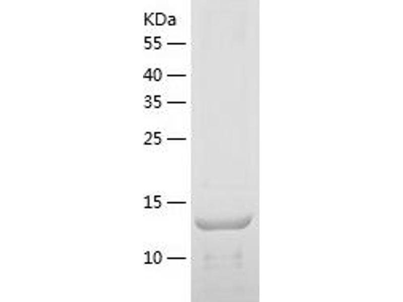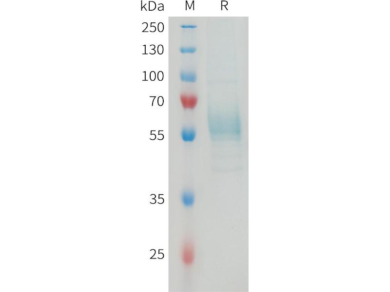 The purity of the protein is greater than 90 % as determined by SDS-PAGE and Coomassie blue staining.
