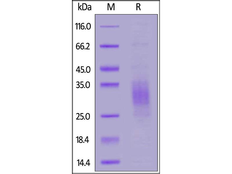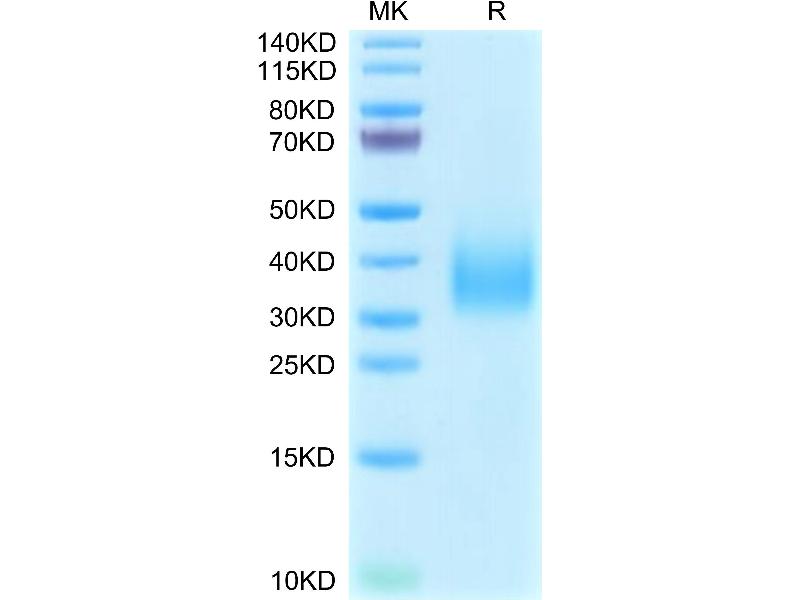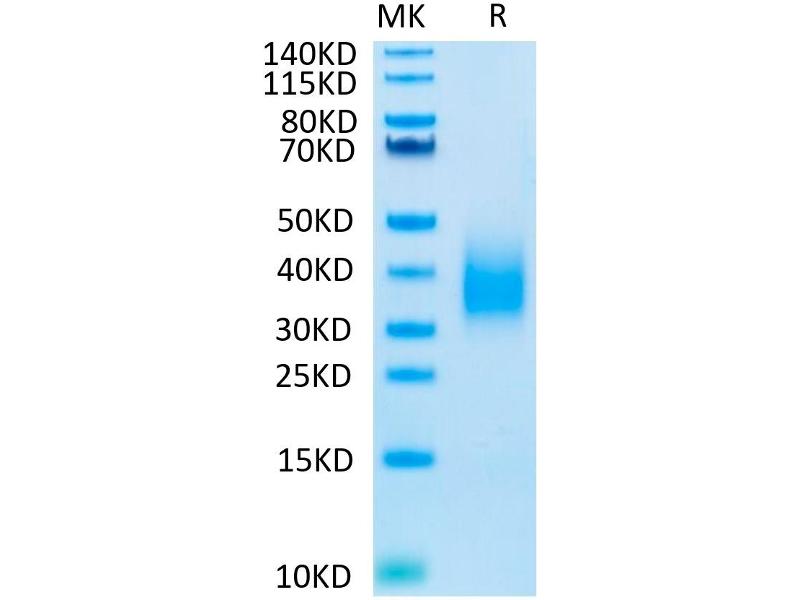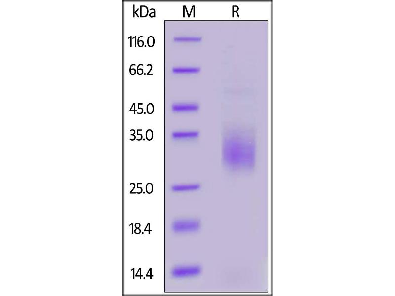 The purity of the protein is greater than 95 % as determined by SDS-PAGE and Coomassie blue staining.