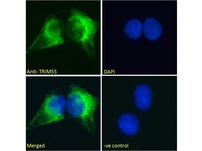 : "Identification of muscle specific ring finger proteins as potential regulators of the titin kinase domain." dans: Journal of molecular biology, Vol. 306, Issue 4, pp. 717-26, (2001) (PubMed).Pseudonymes pour TRIM55 Anticorps