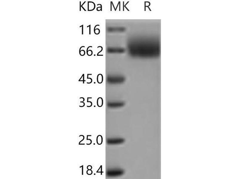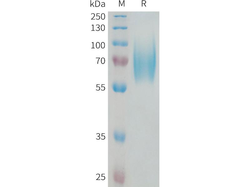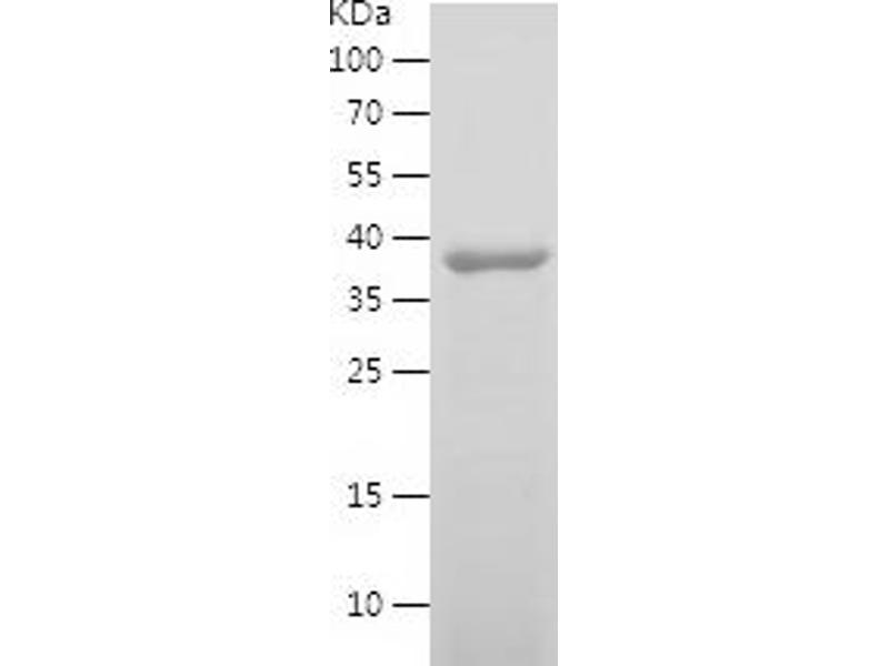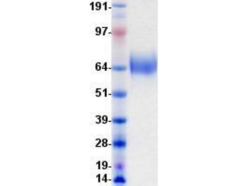 The purity of the protein is greater than 85 % as determined by SDS-PAGE and Coomassie blue staining.