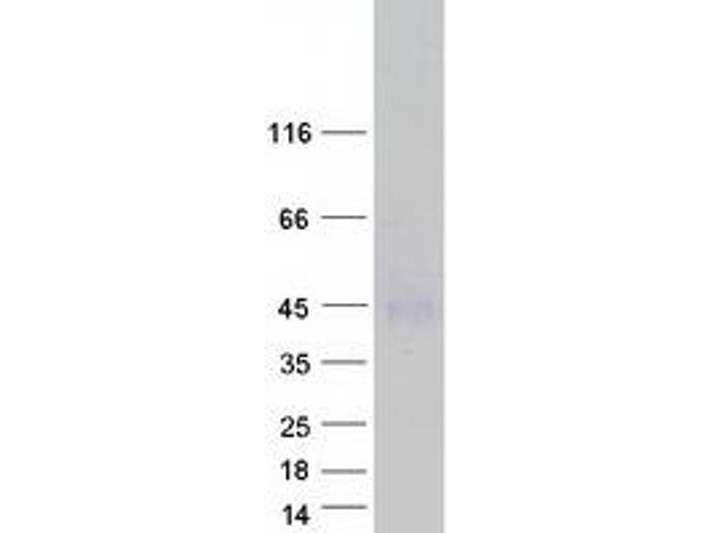 The purity of the protein is greater than 95 % as determined by SDS-PAGE and Coomassie blue staining.