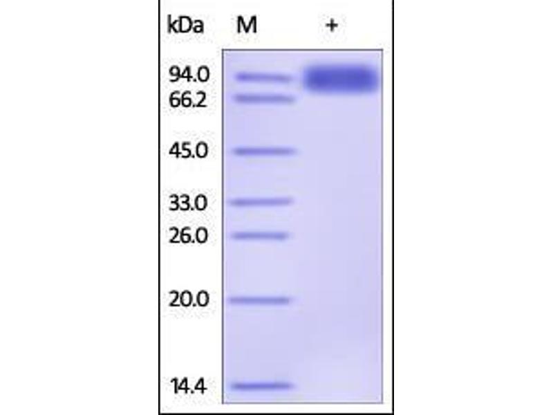 The purity of the protein is greater than 95 % as determined by SDS-PAGE and Coomassie blue staining.