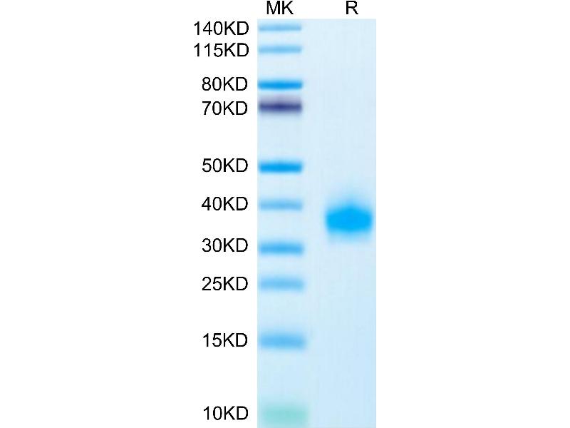 The purity of the protein is greater than 85 % as determined by SDS-PAGE and Coomassie blue staining.