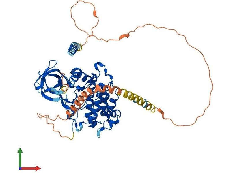 This gene encodes a member of the vaccinia-related kinase (VRK) family of serine/threonine protein kinases. This gene is widely expressed in human tissues and has increased expression in actively dividing cells, such as those in testis, leukocytes, fetal liver, and carcinomas. Its protein localizes to the endoplasmic reticulum and has been shown to phosphorylate casein and undergo autophosphorylation. Multiple alternatively spliced transcript variants have been found for this gene. [provided by RefSeq, Jul 2008].