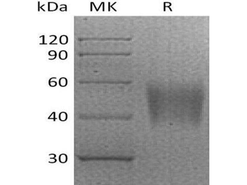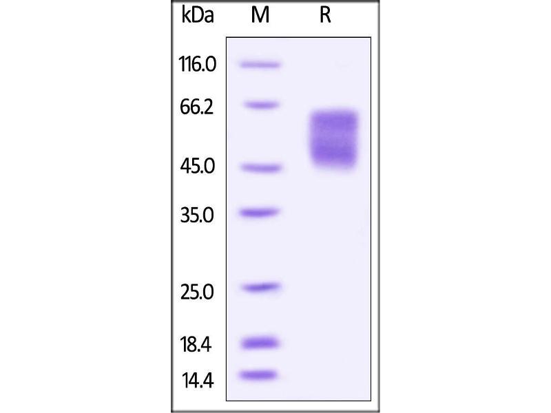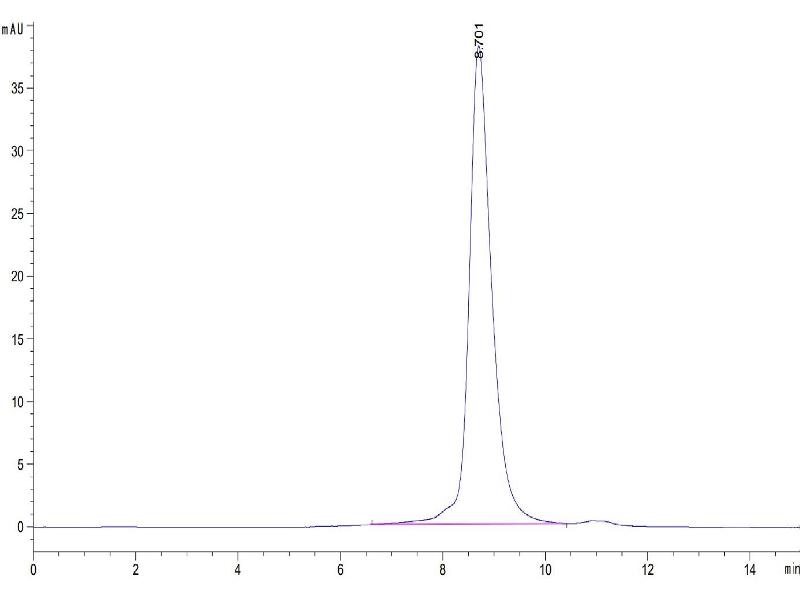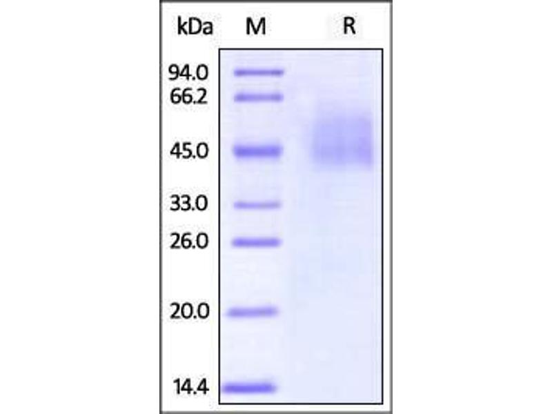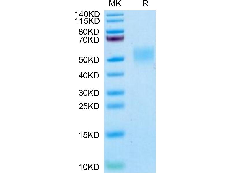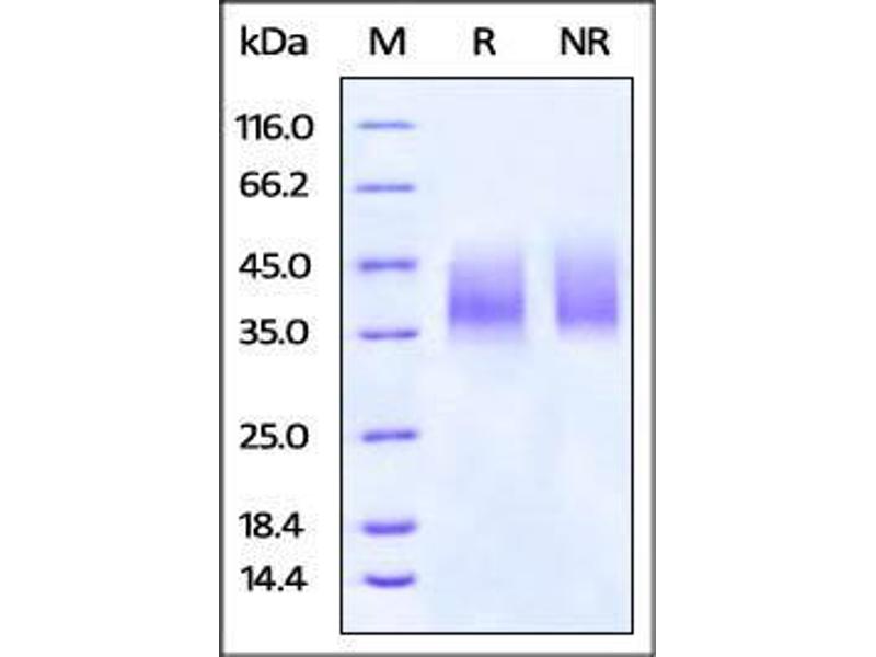 The purity of the protein is greater than 95 % as determined by SDS-PAGE and Coomassie blue staining.