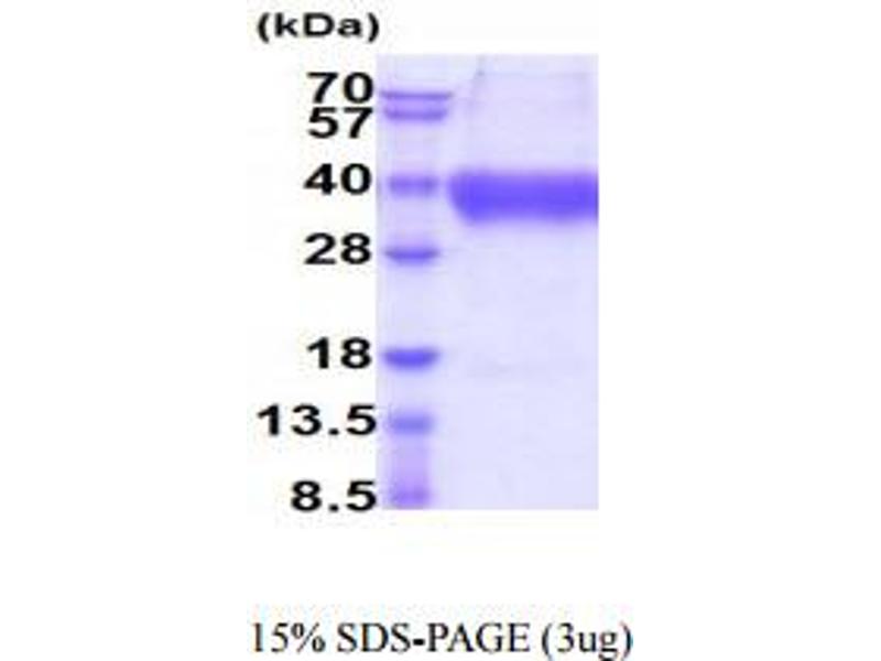The purity of the protein is greater than 85 % as determined by SDS-PAGE and Coomassie blue staining.